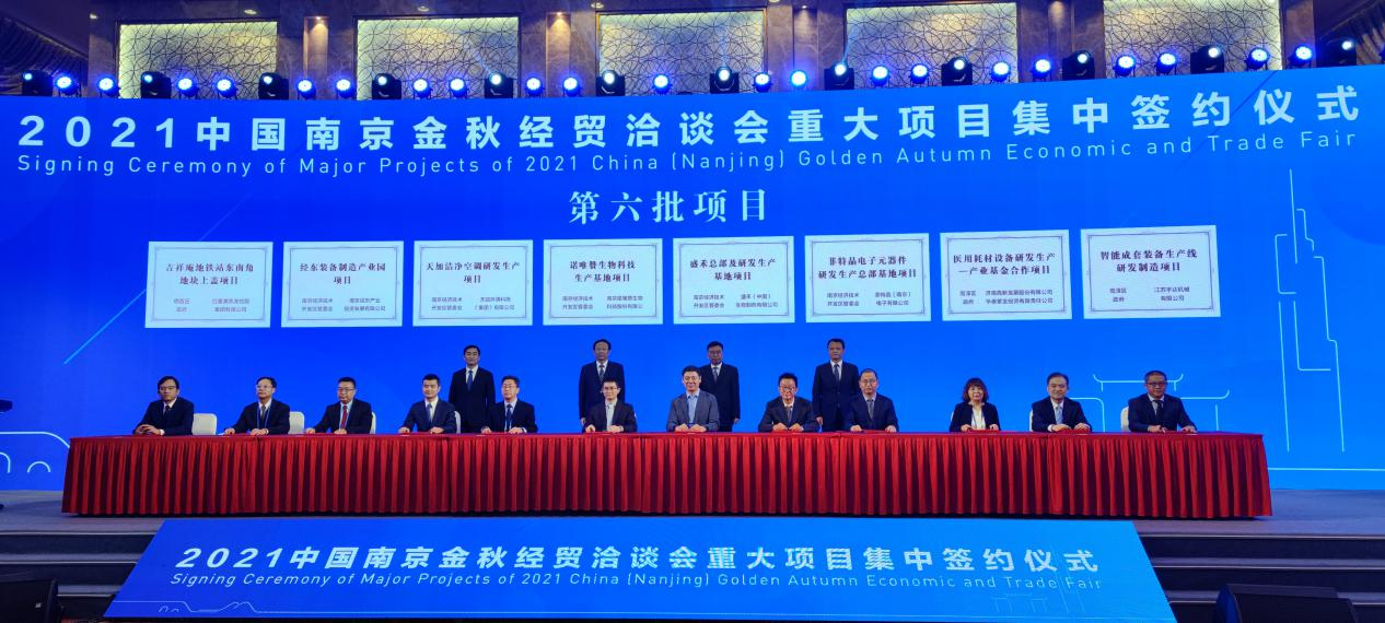 10月13日下午,由南京市人民政府主办的2021中国南京金秋经贸洽谈会重大项目集中签约仪式在南京国际博览集会中心举行。济高?云溪医谷项目作为南京市2021年社会生长重大项目受邀加入。